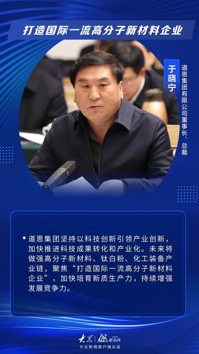 “加入了许多次民营企业座谈会,,,,,,,每次都有感有得。。。。。政府对民营经济的支持力度一直增大,,,,,,,提振了企业生长信心。。。。。”于晓宁董事长体现,,,,,,,自己现在劲头十足,,,,,,,将向导企业全力以赴挖潜扩能、做强实业,,,,,,,聚焦打造国际一流高分子新质料企业,,,,,,,加速培育新质生产力,,,,,,,一连增强生长竞争力,,,,,,,力争到2030年跻身中国民营企业100强。。。。。