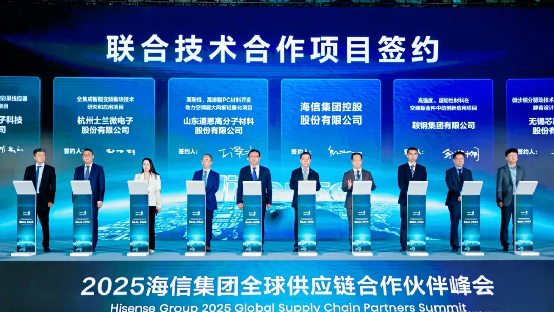 据先容, ,,,,,,海信集团全球供应链相助同伴峰会, ,,,,,,以“智链全球, ,,,,,,韧性共生”为主题, ,,,,,,重点聚焦低碳立异与全球供应链协同, ,,,,,,强调智能化与供应链韧性建设 。。。。。‌‌海信集团党委书记、董事长贾少谦出席聚会, ,,,,,,海信空气工业(筹)总裁殷必彤配合加入签约仪式, ,,,,,,超4500家供应链同伴加入全球协同 。。。。。